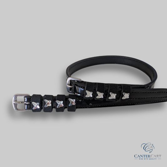 Unisex Sparkly Black Leather Horse Show Belt
