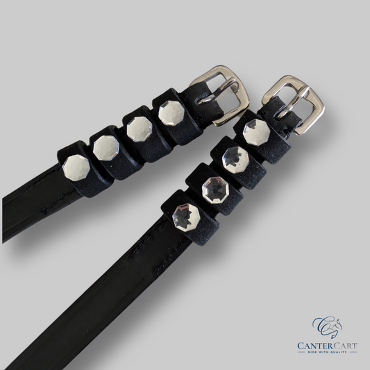 Elegant Leather Spur Straps with Strass Stone